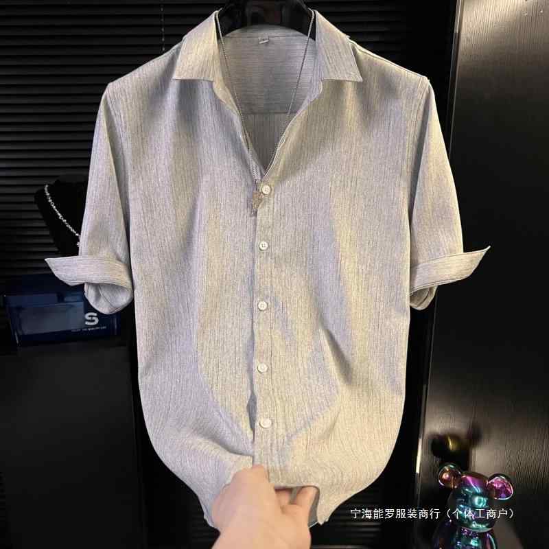 ・カテゴリ: シャツ・主な素材: 化繊混紡(ポリエステル 80%)・スタイル: 軽熟カジュアル・フィット: スリム・ネックライン: スタンドカラー・袖丈: 半袖・柄: 無地・厚み: 普通・デザイン詳細: ステッチ・着用シーン: 日常・カラー展開: ホワイト、ブラック、グレー・サイズ展開: S、M、L、XL、XXL、XXXL・加工: アイロン不要・対象年齢層: 18〜24歳・性別: 男性