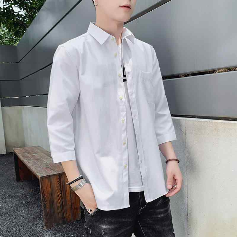 シャツ メンズ 男性用 オックスフォード 無地 7分袖 カジュアル トップス 春秋 薄手 ホワイト ブルー ネイビー グレー M L XL 2XL 3XL 4XL 5XL