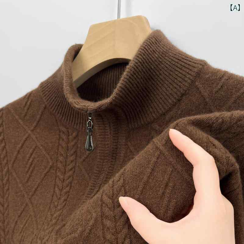 ニット メンズ 男性用 秋冬 100%ウール ハーフジップ セーター プルオーバー ゆったり リラックスフィット 厚手 暖かい 防寒 カジュアル トップス 茶系 灰色系 赤系