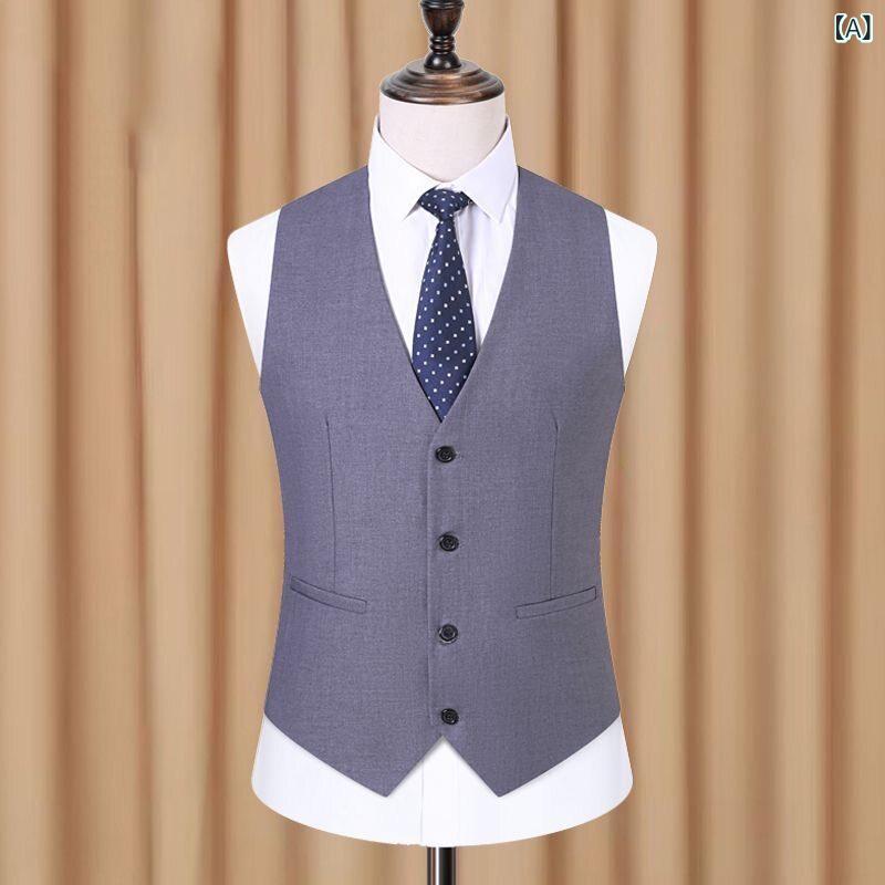 ベスト メンズ スリム 細身 薄手 韓国風 ビジネス フォーマル カジュアル オフィス 普段使い スーツ ジレ Vネック シングルブレスト ポリエステル 結婚式 ブライダル