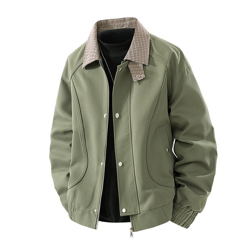 ジャケット 男性用 レトロ 翻襟 ルーズ ゆったりめ フェイクレイヤード ドッキング ワークウェア 通気性 長袖 アウター ミリタリーグリーン カーキ ブラック