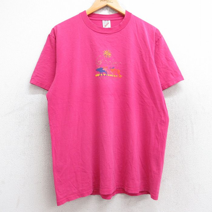 【中古】古着 ジャージーズ 半袖 ビンテージ ヴィンテージTシャツ メンズ 90年代 90s Glacier シカ コットン クルーネック 丸首 USA製 アメリカ製 濃ピンク Lサイズ 中古 | 春夏 夏物 夏服 ヴィンテージTシャツ メンズファッション カットソー ティーシャツ ティ 2OF