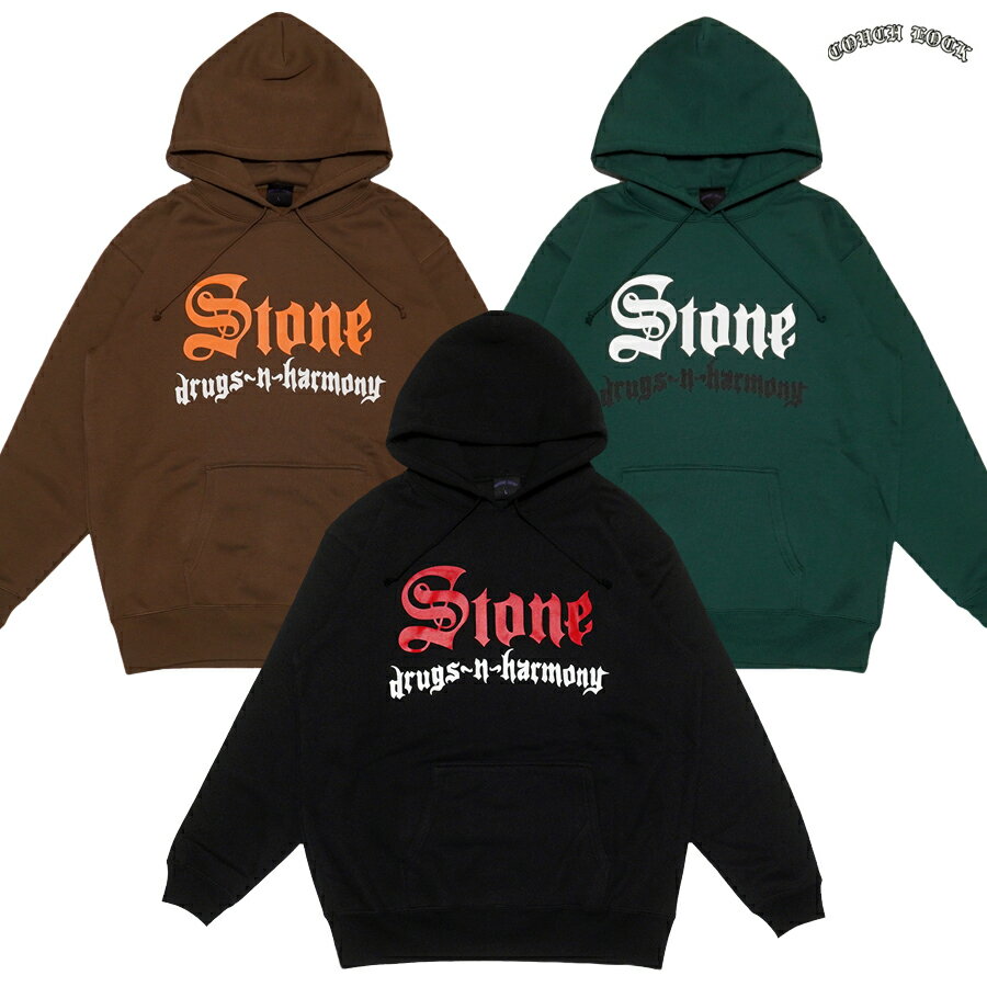 【送料無料】COUCH LOCK STONE PULLOVER HOODIE【BLACK/BROWN/DARK GREEN】(M・L・XL・2XL)(カウチロック 通販 メンズ 大きいサイズ パーカー スウェット プルオーバー フード フーディ 長袖 ロングスリーブ WEST COAST HIPHOP ヒップホップ アーティスト)