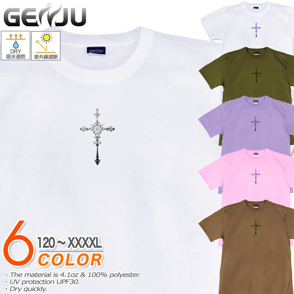 GENJU 十字架Tシャツ メンズ キッズ UVカット ドライ ポリエステル クロス Tシャツ tシャツ アメカジ スポーツ KIDS 子供服 半袖 紫外線カット ブランド 大きめサイズ ホワイト ピンク XXL XXXL XXXXL 2L 3L 4L 5L 120-140cm S-XXXXL