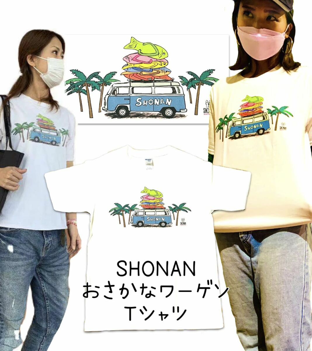 【湘南】WhiteLilyオリジナル おさかなサンダル×ワーゲンバス 【お魚サンダル】【限定】【kidsサイズ】【家族ペア】【Tシャツ】【白】【半袖】【お土産】
