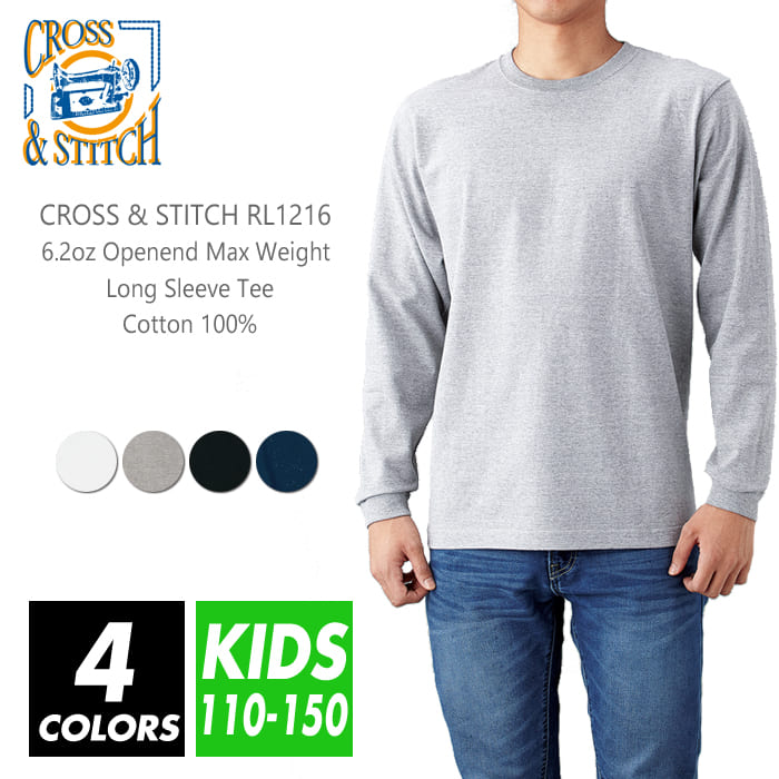 長袖 Tシャツ リブ 無地 メンズ レディース キッズ 【楽天最安値に挑戦】cross & stitch(クロスステッチ) 6.2オンス rl1216 110-xxl ロングTシャツ ロンT スポーツ ダンス カラフル カラー 運動会 文化祭 イベント お揃い ストリート スタッフ ルームウエア 部屋着