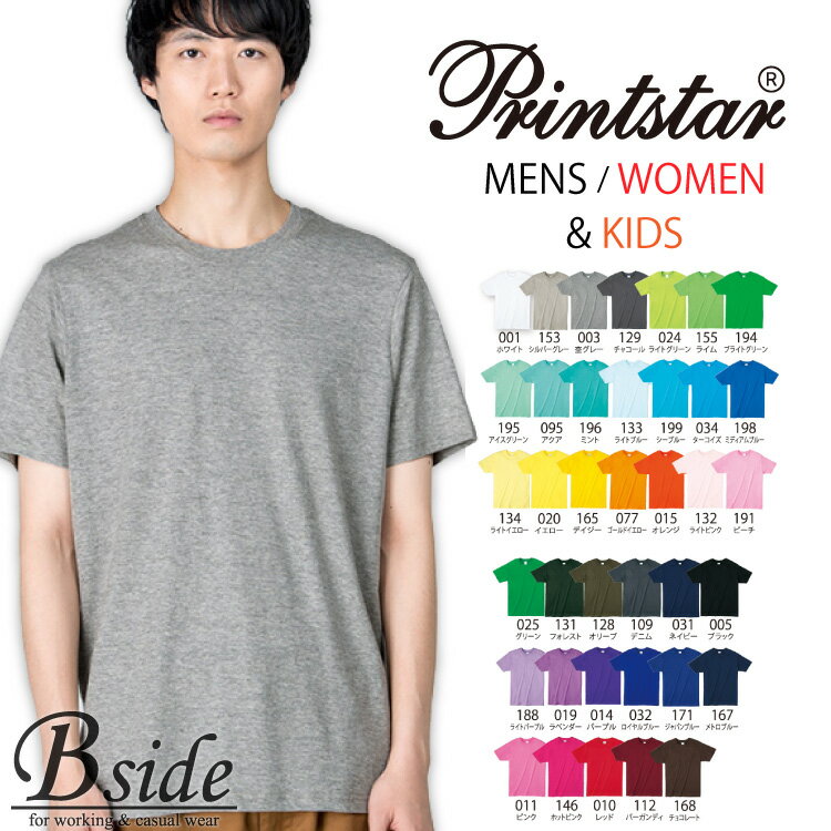 【カラー1】プリントスター【PRINTSTAR】(無地) 4.0オンス BBT ライトウェイトTシャツ 00083-bbt コストパフォーマンスと軽量感に優れた一枚(150-XXL)(4.0oz)(kids・子供用サイズ) Tシャツ 【メール便送料無料】