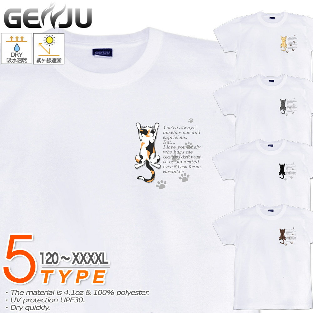 GENJU ネコTシャツ メンズ キッズ UVカット ドライ ポリエステル 猫 肉球 吸水速乾 Tシャツ tシャツ アメカジ スポーツ KIDS 子供服 半袖 紫外線カット ブランド 大きめサイズ ホワイト XXL XXXL XXXXL 2L 3L 4L 5L 120-140cm S-XXXXL