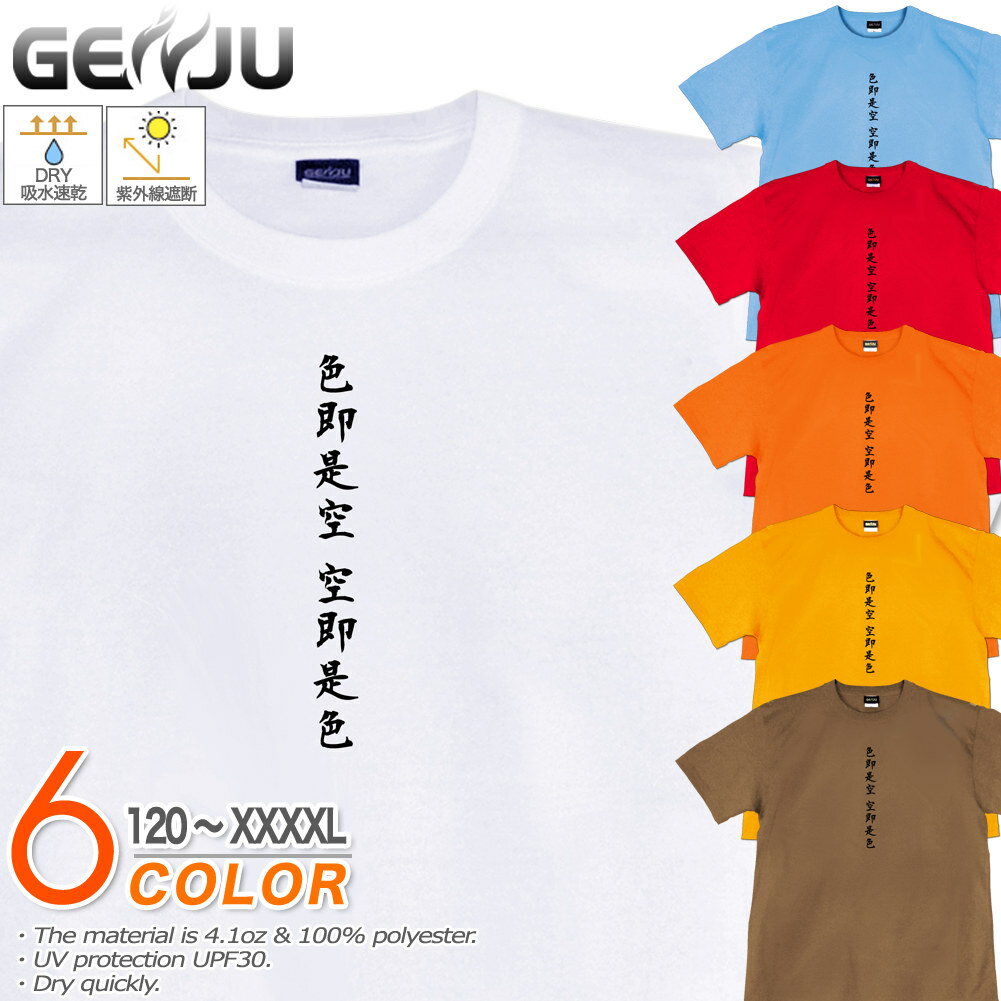 GENJU 般若心経Tシャツ メンズ キッズ UVカット ドライ ポリエステル 和柄 吸水速乾 念仏 Tシャツ tシャツ アメカジ スポーツ KIDS 子供服 半袖 紫外線カット ブランド 大きめサイズ ホワイト オレンジ XXL XXXL XXXXL 2L 3L 4L 5L 120-140cm S-XXXXL