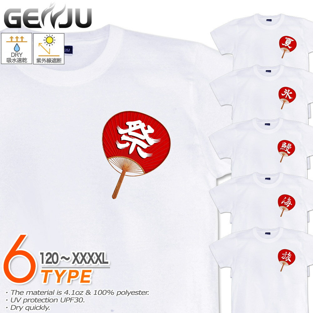GENJU うちわTシャツ メンズ キッズ UVカット ドライ ポリエステル 夏 祭り 吸水速乾 Tシャツ tシャツ アメカジ スポーツ KIDS 子供服 半袖 紫外線カット ブランド 大きめサイズ ホワイト XXL XXXL XXXXL 2L 3L 4L 5L 120-140cm S-XXXXL