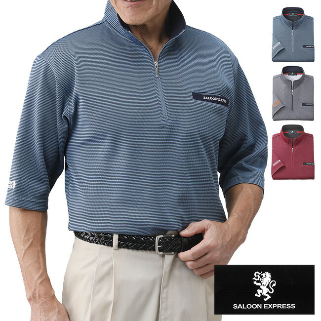 【レビュー特典あり】SALOON EXPRESS サルーンエクスプレス スタンド襟5分袖シャツ3色組 AS-270[シャツ 5分袖 夏 メンズ ポロシャツ 無地 スタンド襟 ジップシャツ スポーティ ブランド ロゴ 刺繍 冷房対策 半袖 上品 男性 ギフト 父の日]
