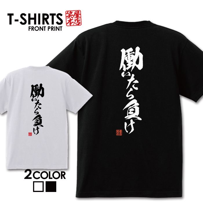 必ずご確認下さい。 【商品内容】 デザインTシャツ 【カラー】 ・ホワイト・ブラック 【商品詳細】 【サイズ展開】・S/M/L/LL【素材】綿100%【ボディ生産国】中国【印刷】日本 【注意事項】・各採寸箇所については、実寸(平置き)より約-2cm〜+2cm程度は誤差の許容範囲とさせて頂いております。 ・ページ内写真と実物では多少の色の違いが生じる事があります。 ・発送まで3〜5営業日いただいております。 ・注文確定後、自社印刷するため、ご注文後のキャンセルはお断りさせていただいております。 【メール便について】 ・代金引換の場合、メール便は選択できません。 別途、弊社規定送料+代引手数料となります。・メール便の配送中での商品破損の返品・交換はできません。 配送中の保障をご希望の方は宅配便での購入をお勧めします