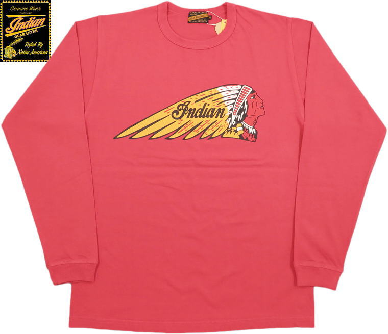 INDIAN MOTORCYCLE/インディアンモーターサイクル L/S T-SHIRT “INDIAN HEAD” 長袖プリントTシャツ/カットソー RED(インディアンレッド)/Lot No. IM69056
