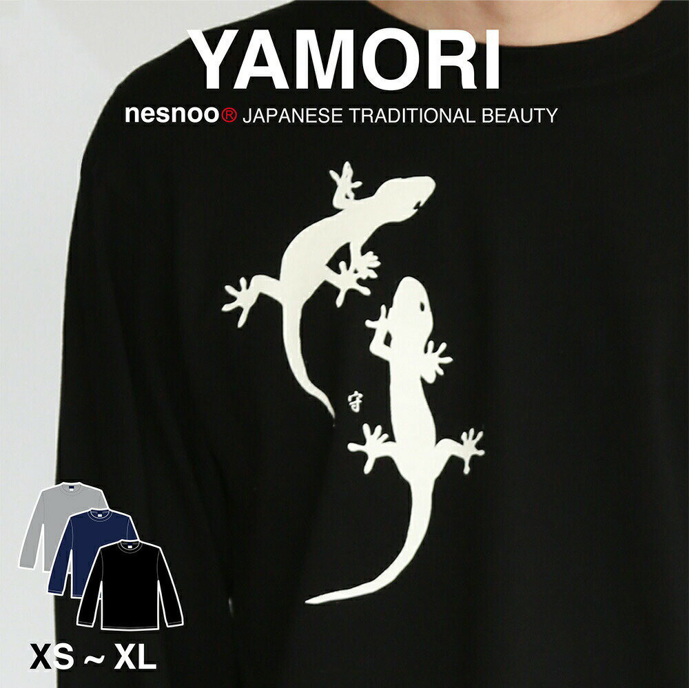 和柄 長袖 tシャツ 守宮 トカゲ 家守 かっこいい シンプル メンズ レディース ユニセックス ファッション 服 S M L XL 黒 ブラック 幸運 秋服 冬 秋服 秋 ブランド プリント ヤモリ 爬虫類 オリジナル ギフト 模様 イラスト 絵 デザイン 和風
