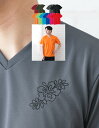 \SS〜5L/ 手書き風ハイビスカス刺繍 ドライ Vネック アジアン バリ ファッション【 吸汗 速乾 通気性 UVカット Vネック 男性兼用 】レディース vネック tシャツ 大きいサイズ ユニフォーム 半袖 エステ Tシャツ トップス マッサージ 整体 サロン