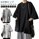 ポケット付きビッグT Tシャツ ビッグシルエット 5分袖Tシャツ メンズ メンズtシャツ 大きめポケット カジュアル おしゃれ トップス 春夏 夏 大きいサイズ ゆったり 体型カバー 無地 シンプル メンズファッション 大人 男性 送料無料