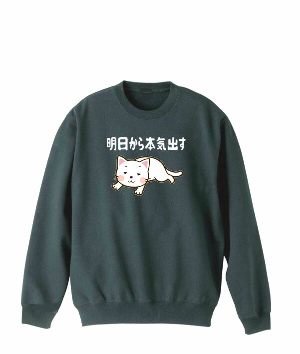明日から本気出す ( デザイン書道 )トレーナー 面白トレーナー おもしろトレーナー かっこいいトレーナー スウェットメンズ レディース キッズトレーナー 漢字スウェット おもしろスウェット 文字トレーナー 漢字 オリジナルトレーナー プリントトレーナー 長袖 送料無料