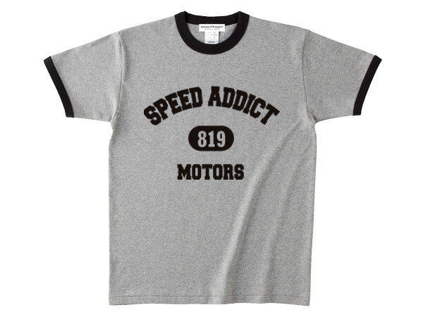 SPEED ADDICT 819 COLLEGE LOGO Ringer T-shirt (スピードアディクト819カレッジロゴリンガーTシャツ)GRAY × BLACK 杢グレー 霜降りグレー trim トリム champion チャンピオン sweat スウェット パーカー ucla harvard yale 70s 80s