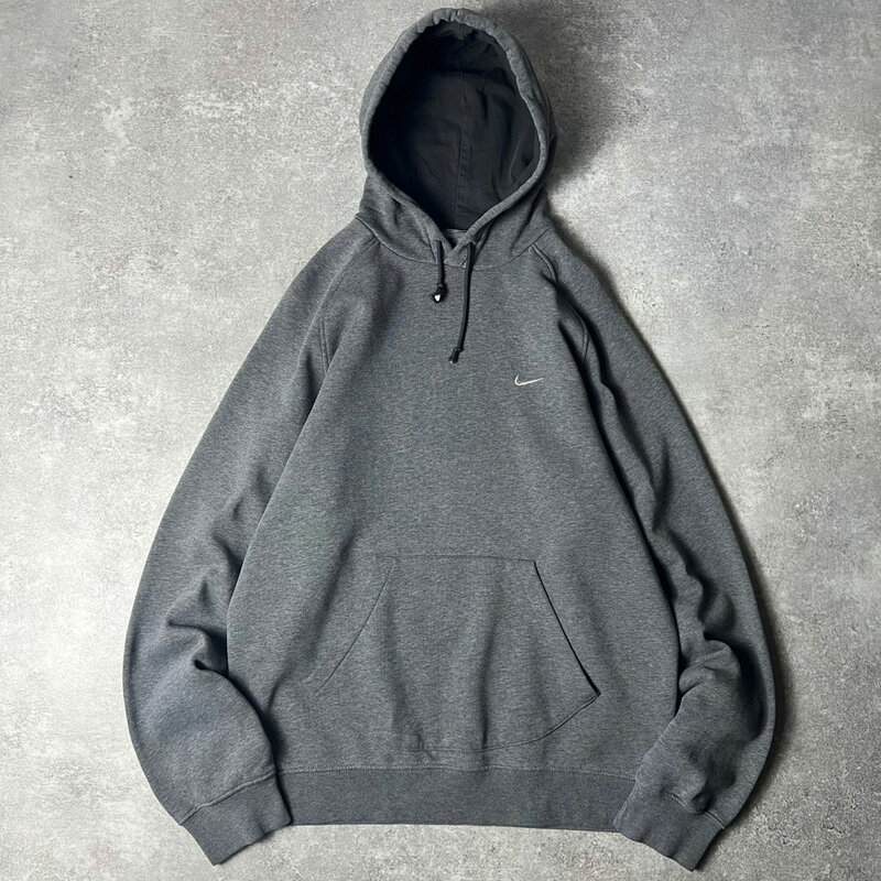 00s NIKE スモール スウォッシュ ロゴ刺繍 スウェット フード パーカー L / 00年代 ナイキ スウッシュ トレーナー グレー 【中古】 古着 アメリカ古着 USED ユーズド 中古 VINTAGE US古着 アメカジ