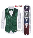 ベスト スパンコール ベスト メンズ ステージ 衣装 キラキラ チェック柄 蝶ネクタイ付き カラースパンコール おしゃれ 舞台 ダンス 衣装 緑 赤 紫 銀 青 S M L XL 2XL