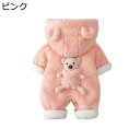 ベビー ロンパース 着ぐるみ 女の子 男の子 ジャンプスーツ 熊おもちゃ ジップ 秋冬 フード付 防寒対策 ボア カバーオール 前開き 着せ替え便利 もこもこ 可愛い クリスマス 出産祝い アニマル コスプレ