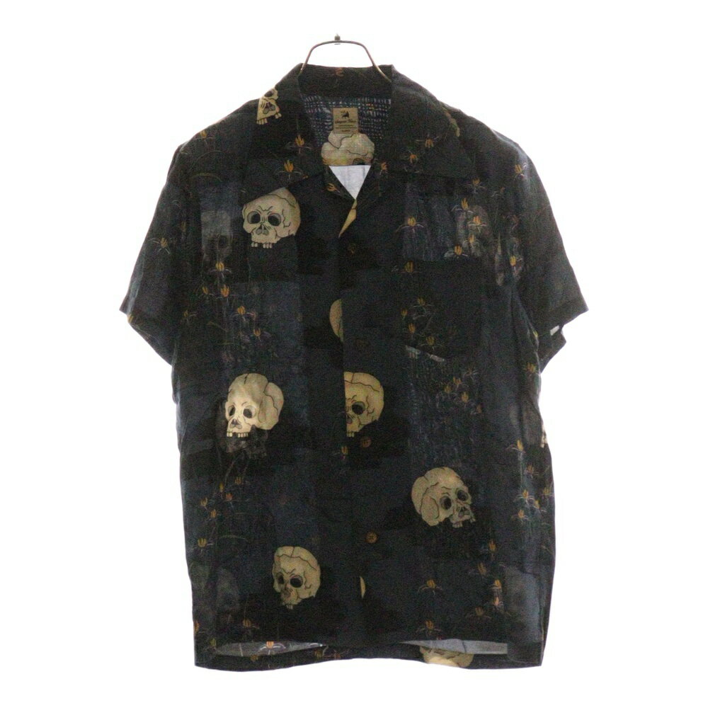 Sasquatchfabrix.(サスクワッチファブリックス) サイズ:M 11SS どくろ スカル レーヨン オープンカラー アロハシャツ 半袖シャツ ネイビー 11SS-SY5-001【中古】【程度B】【カラーネイビー】【オンライン限定商品】