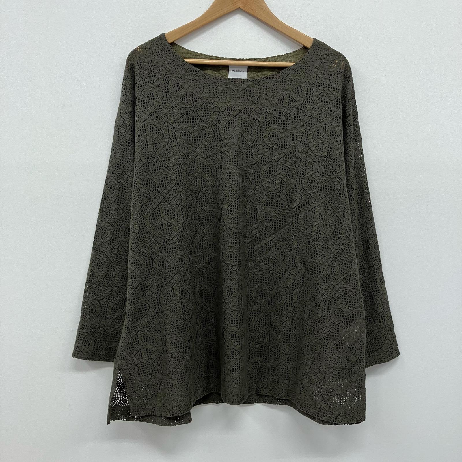 【中古】SASQUATCH fabrix | サスクワッチファブリックス LOVE & PEACE LACE SMOCK カットソー 24SS-CSL-004 カーキ サイズ:XL【イオン広店】