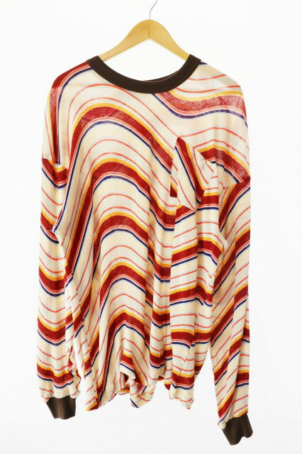 【中古】サスクワッチファブリックス SASQUATCH fabrix 25SS L/S T-SHIRT PSYCHEDELIC BORDER サイケデリック ボーダー 長袖Tシャツ M 25SS-CSL-001 ベージュ マルチカラー ブランド古着ベクトル 中古●251126