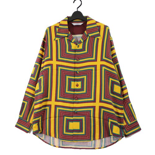 【中古】 Sasquatchfabrix. サスクワッチファブリックス 22AW RASTA CHECK OC SHIRT ラスタチェック オープンカラーシャツ S イエロー