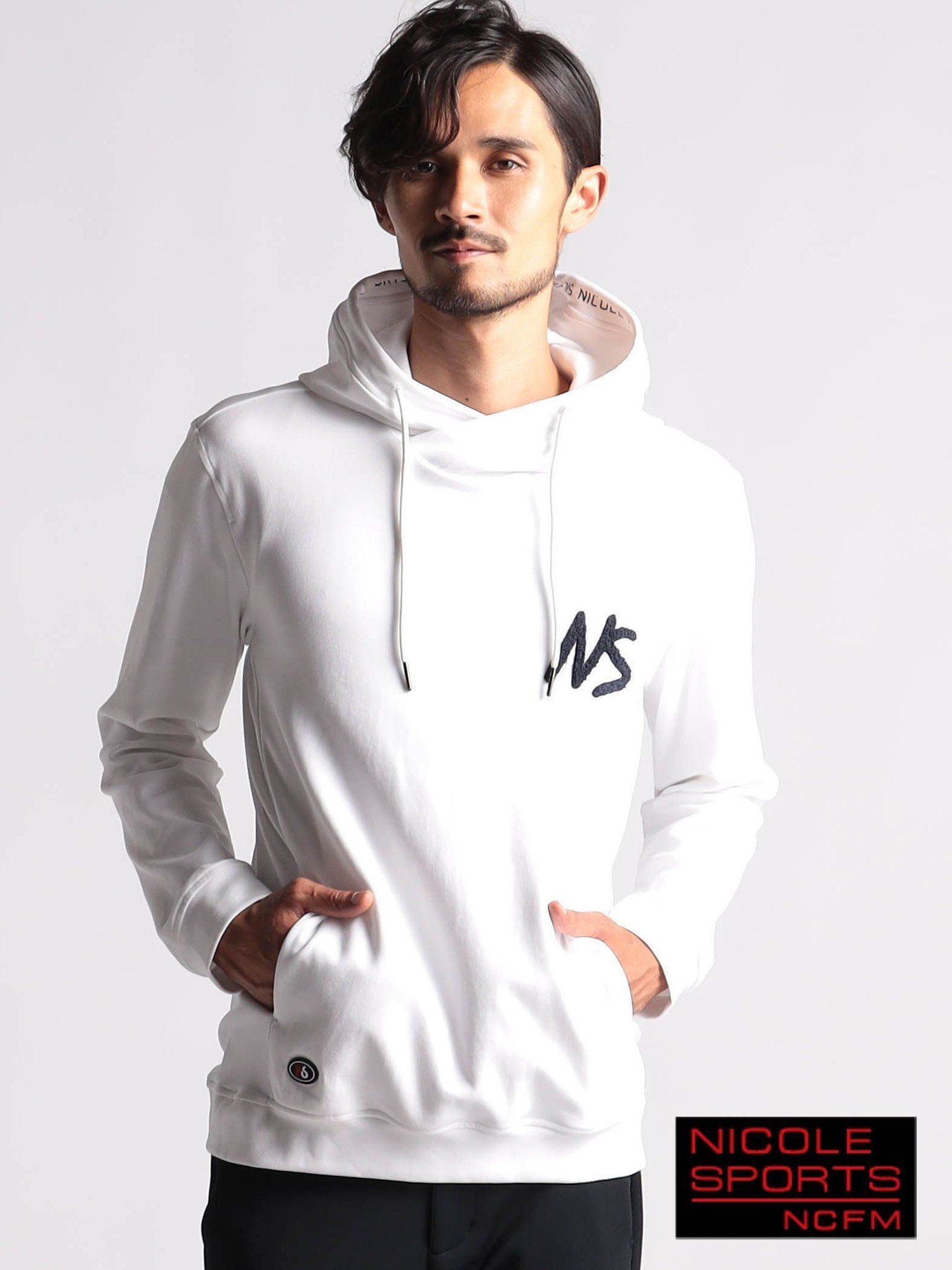 【SALE/37%OFF】NICOLE CLUB FOR MEN 【NICOLE SPORTS】サガラ刺繍プルオーバーパーカー ニコル トップス パーカー・フーディー ブラック カーキグリーン ホワイト ネイビー【送料無料】