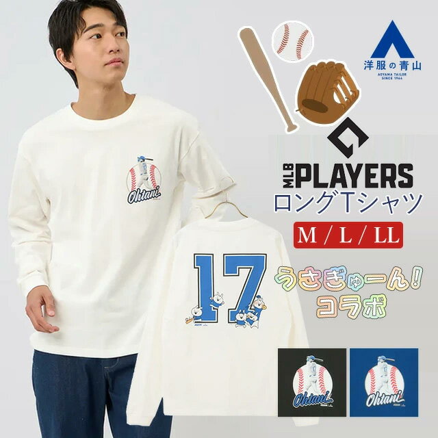 【洋服の青山】大谷翔平 × USAGYUUUN!!! ロングTシャツ 春夏 ホワイト ブラック ブルー 長袖 ロサンゼルス・ドジャース MLB 野球 応援 グッズ ベースボール Ryno Sports ライノスポーツ うさぎゅーん! 白 黒 青 そで トップス カットソー ティーシャツ Los Angeles Dodgers