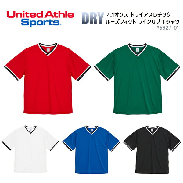 ドライアスレチック ルーズフィット ラインリブTシャツ (4.1オンス) UNITED ATHLE SPORTS ユナイテッドアスレ スポーツ ゲームシャツ 吸汗 速乾 紫外線遮蔽 スポーティ スポーツウェア 運動 部活 チームウェア ユニフォーム Vネック ブロークコア 5927-01 2024AW