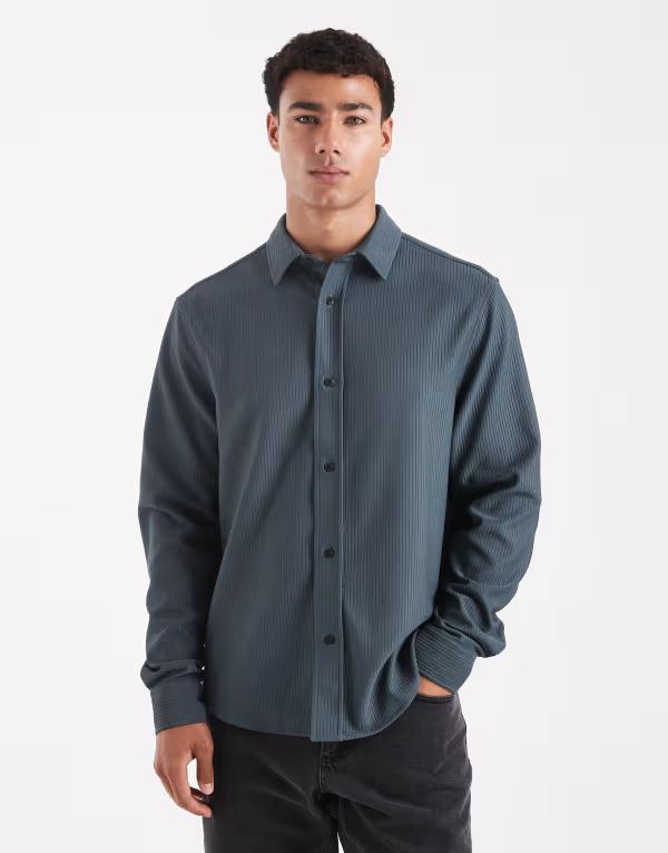 【送料無料】 エイソス メンズ シャツ トップス ASOS DESIGN regular fit ribbed shirt in steel blue Steel Blue