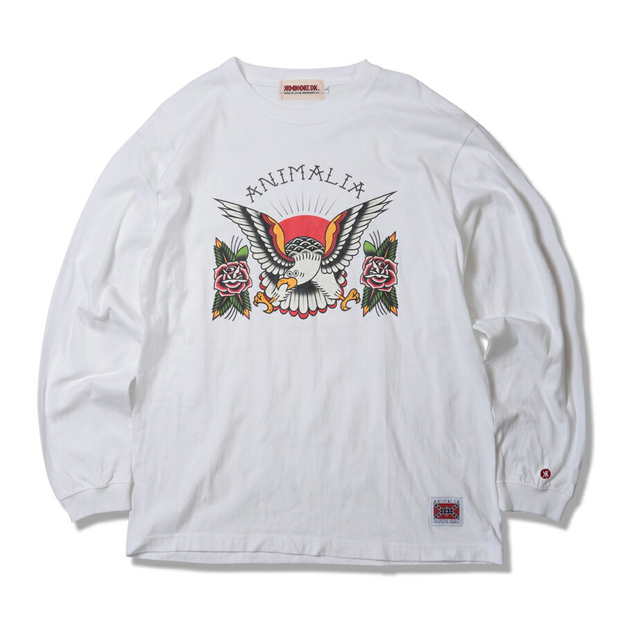 【 ANIMALIA / L/S Tee - Eagle & Roses / WHITE 】 アニマリア 長袖 ロング Tシャツ ロンT イーグル 鷲 ローズ バラ ホワイト 白 送料無料