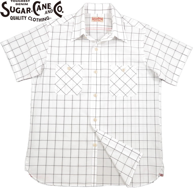 SUGAR CANE/シュガーケーン WINDOWPANE CHECK S/S WORK SHIRT ウインドウペン チェック ワークシャツ/半袖チェックシャツ 105) OFF WHITE(オフホワイト)/Lot No. SC39290