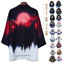 羽織り 男女兼用 カーディガン アウター 上着 浴衣 肩掛け チャイナ風 和風 浮世絵 花柄 七分袖 日焼け防止 UVカット カジュアル ゆったり おしゃれ 大人かわいい 文化祭 学園祭 イベント 薄手 夏 送料無料