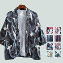 羽織 メンズ 着物 浴衣 七分袖 甚平風 浴衣風 UVカット カジュアル ジャケット カーディガン カーデ ポンチョ ゆったり ダンス 総柄シャツ 夏祭り 花火大会 ビジカジ トップス リモートワーク コスプレ 男性用 部屋着 在宅 薄手 春服 夏物 夏 父の日