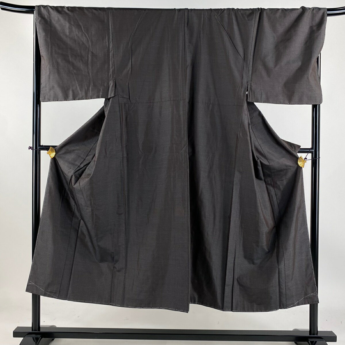 男着物 身丈145cm 裄丈68.5cm M 袷 アンサブル 紬 亀甲絣 茶紫 正絹 秀品 【中古】