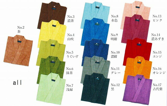 上品な カスリ模様で 16色。 サイズも SS~LL までありますので、 男女 ペアルック で楽しめます。 茶・濃茶・山吹・うぐいす・抹茶・浅緑・ 水色・明紺・濃紺・グレー・黒・ ピンク・濃あずき・エンジ・オレンジ・古代紫 作務衣の素材には最適の日本製の生地です。 さらに、厳選された優秀な縫製技術を駆使して 日本の工場で縫製された 日本製の商品です。 「作務」とは、仏教寺院での あらゆる労働や作業のことを言い ズボンの渡り幅をはじめとして 全体的に ゆったりとしたシルエットで 動きやすく 作務を行う時に 着用していた服装が 『作務衣』です。 ■こんな物を探している方にお勧めです■ ゆったりした ウエア 日本製のパジャマ 肌触りの良い生地の部屋着 リラクシング ウエア 縫製のしっかりした作務衣 涼しい 普段着 いかがでしょうか。☆送料無料 で、お届けします☆ 皆様の毎日が やすらかに、しあわせで ありますように。 ↑ 別の種類は、ここをクリックして、こちらのページをご覧ください。