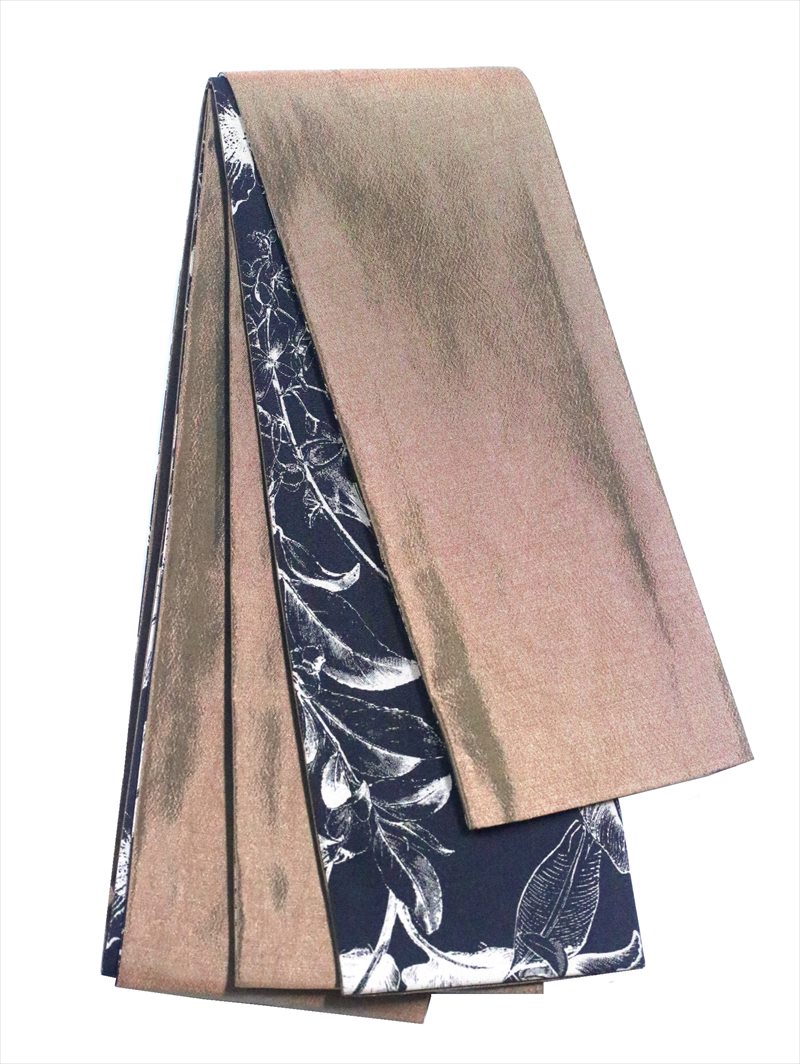 リバーシブル 角帯 メンズ No.145うす茶・黒地・植物柄