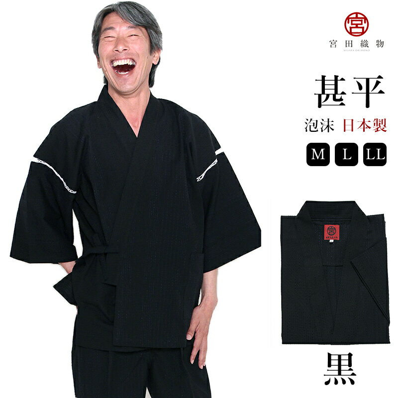 甚平 じんべい 泡沫(うたかた) 黒 M/L/LL 宮田織物 メンズ 男性 日本製 夏用 綿100% 父の日 ギフト プレゼント 大きいサイズ 久留米織 おしゃれ 部屋着 パジャマ 和装 贈り物 贈答用 上下セット ルームウェア 涼やか 花火大会 夏祭り 和柄 ブラック black