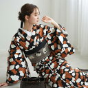 【ニコアンティーク 着物+帯 2点セット 三毛猫】着物 洗える着物 単衣 レトロ レディース 帯 細帯 猫 ねこ柄 ファブリック着物 黒系 猫着物 街着 ひとえ カジュアル バチ衿 女性 おしゃれ 個性的 和服 日本製 国産