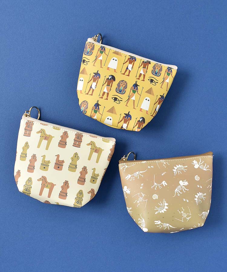 ポーチ 小物入れ レディース 化粧ポーチ おしゃれ 台形 軽量 恐竜 骨 化石 古代 エジプト 埴輪 はにわ 柄 グッズ ギフト プレゼント 博物館マチ付ポーチ ブルーブルーエ bleubleuet