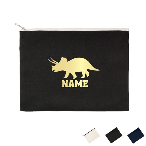 トリケラトプス3 名入れフラットポーチLサイズ ポーチ マルチケース マルチポーチ 小物入れ 収納 おもちゃバッグ クラッチバッグ 推し活 名入れ 名入れグッズ メンズ レディース オリジナル お揃い 恐竜 化石 肉食 草食 雑食 海 陸