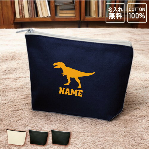 ティラノサウルス3 名入れカジュアルポーチ 名入れポーチ 小物入れ メンズ レディース オリジナル お揃い オーダーメイド 恐竜 化石 肉食 草食 雑食 海 陸 名入れグッズ