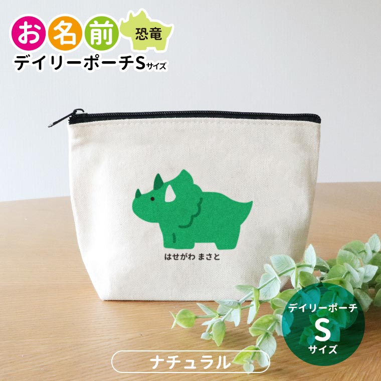 お名前 恐竜 デイリーポーチ ナチュラルカラー Sサイズ アンシャンテラボ / オリジナル商品 名入れ 保育園 幼稚園 入園 入園準備 入学準備 筆箱 ティラノサウルス ステゴサウルス トリケラトプス プテラノドン【無料メッセージシール付き】【ゆうパケット対応】