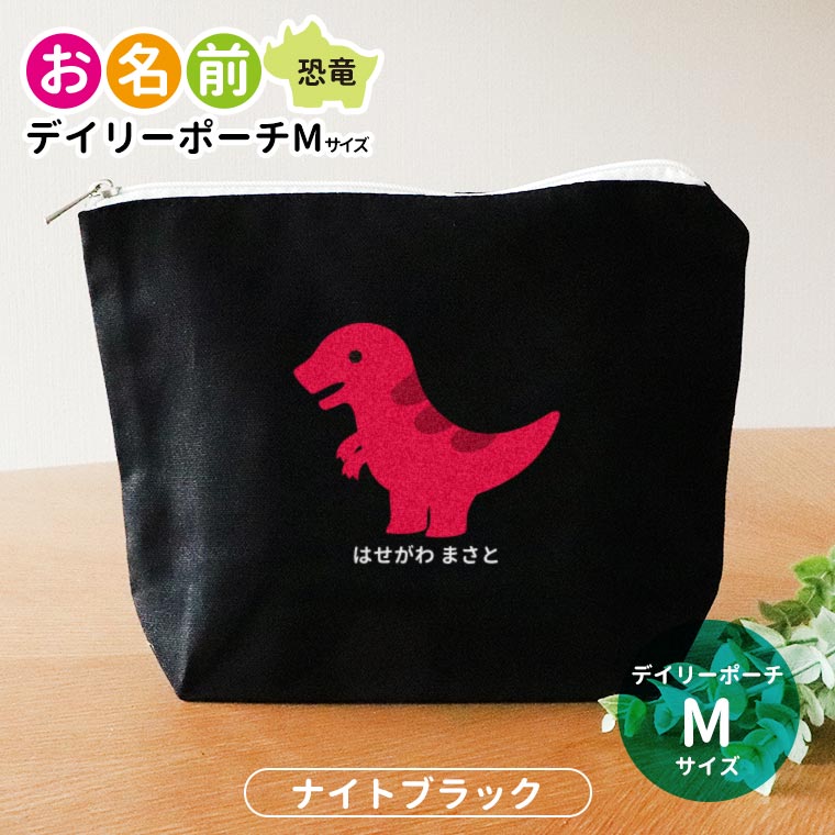 お名前 恐竜 デイリーポーチ ナイトブラック Mサイズ アンシャンテラボ / オリジナル商品 名入れ 保育園 幼稚園 入園 入園準備 入学準備 筆箱 ブラキオサウルス プレシオサウルス ステゴサウルス トリケラトプス【無料メッセージシール付き】【ゆうパケット対応】