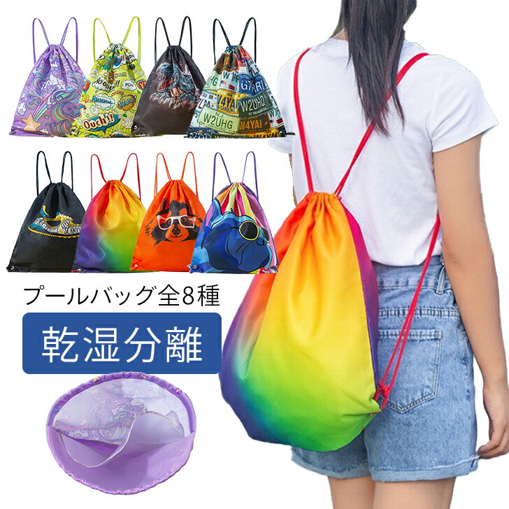 プールバッグ ナップサック 乾湿分離 8色 レインボー ユニコーン 恐竜 犬 漫画 シューズ 高機能 トラベルバッグ 防水 ジムバッグ スイムバッグ 多機能 海水浴 スイミングバッグ 防水バッグ レディース 大きい シンプル リュック 大容量