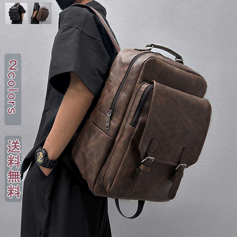 リュックサック リュック ビジネスバッグ レザーバック フェイクレザー 無地 学生 ビズネスマン マグネット 手提げ 大容量 側ポケット 調節可能 出張 旅行 よい通気性 A4 パソコンケース 多機能 おしゃれ 送料無料