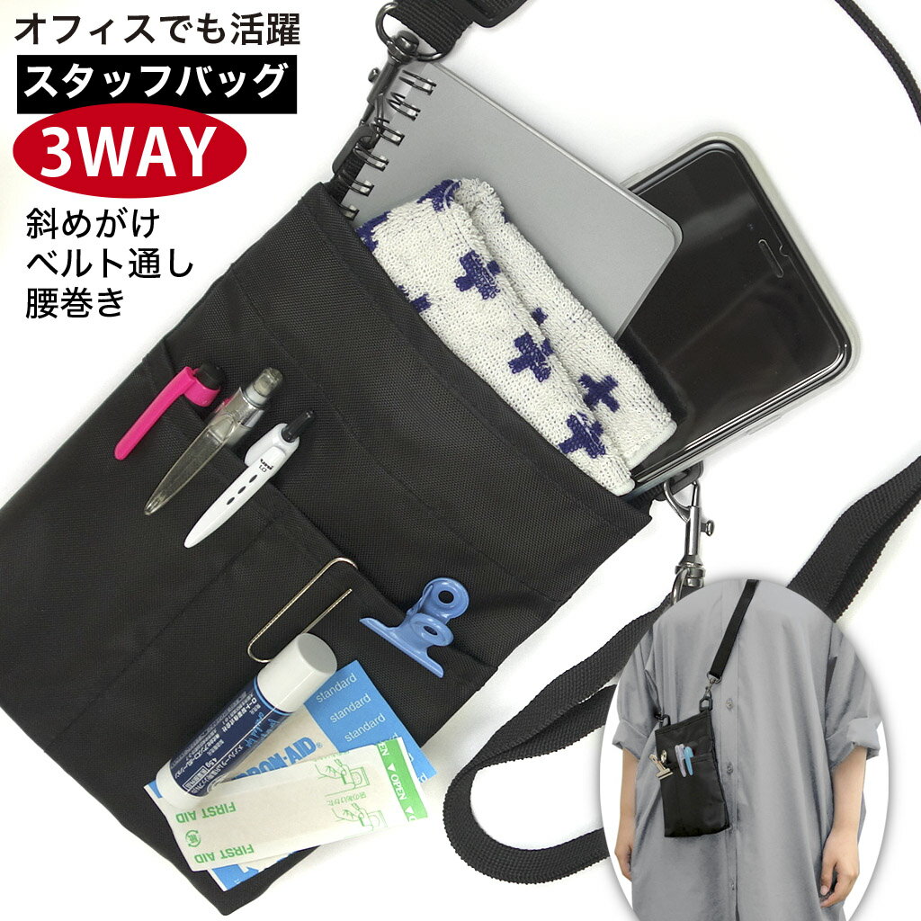 オフィスでも便利 作業用ポーチ ウエストポーチ 3way スタッフバッグ スマホポーチ スマホバッグ サコッシュ 作業 仕事 軽量 コンパクト 介護 小さめ ベルト通し 腰巻き ショルダーバッグ 斜めがけ メンズ レディース 男女共用